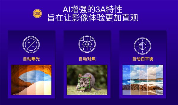 此外,它还支持视频炒粉、广域多帧降噪,并在自动曝光、自动对焦、自动白平衡这3A特性中直接硬件层面引入了AI增强。