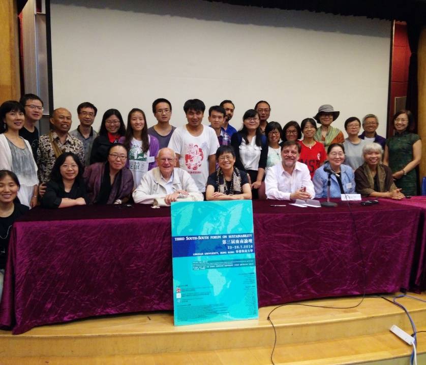 弗朗索瓦·浩达(François Houtart,前排左四),戴锦华(前排左三),刘健芝(前排右四)。2016年,第三届南南论坛,香港岭南大学。