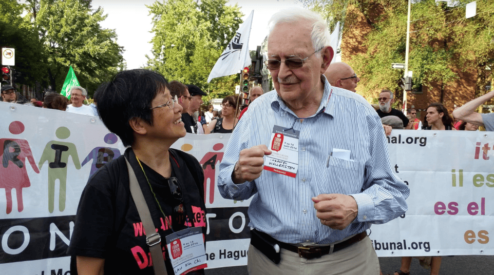 伊曼纽尔·沃勒斯坦(Immanuel Wallerstein,右) 与 刘健芝(左)。2016年,加拿大蒙特利尔世界社会论坛开幕。